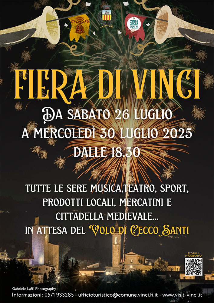 La Fiera di Vinci è organizzata dall’associazione Volo di Cecco Santi, in collaborazione con il Comune di Vinci, il Centro Commerciale Naturale Vincincentro, l’associazione Strade dell’Olio e del Vino del Montalbano e dal Foto Club di Vinci.