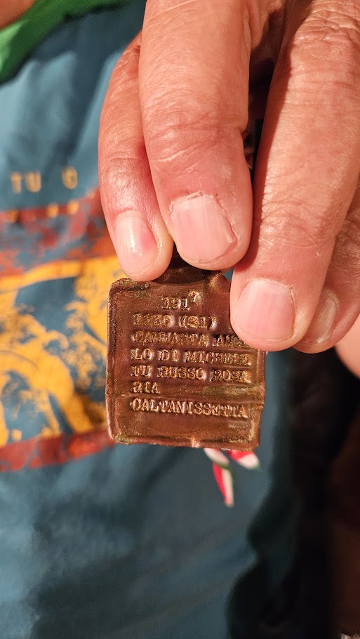L'oggetto, che riporta il nome e i dati di un soldato, Angelo Cammarata, figlio Michele e di Mariarosa Russo, è stata ritrovata dal sig. Patrizio Barlondi nell’ottobre del 2024 e all’epoca consegnata al sindaco Lazzerini con l’impegno comune di recapitarla alla famiglia del soldato.