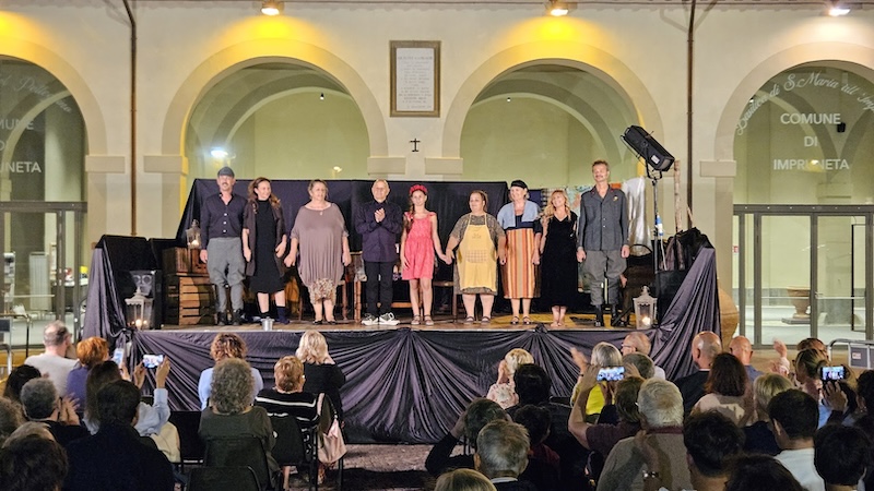 La serata, inserita nel contesto delle celebrazioni in ricordo delle vittime del bombardamento che colpì Impruneta il 27 e 28 Luglio del 1944, è proseguita con la rappresentazione teatrale "Ceneri di pietra, sotto le bombe, sopra la speranza", messa in scena dalla Compagnia di Achille con la collaborazione della Pro Loco di Impruneta.
