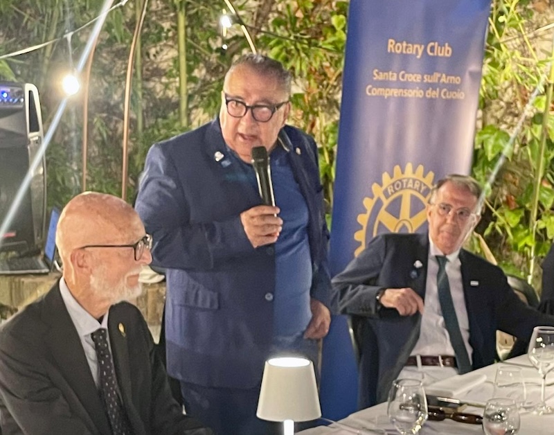 Giovedì 31 luglio 2025 presso l’accogliente location del Ristorante “Fanellino” località Staffoli, si è tenuta la conviviale del Club Rotary Santa Croce sull’Arno – Comprensorio del cuoio, dedicata all’Amicizia rotariana, tema molto caro a tutti i soci. Dopo i tradizionali inni ed il suono della campana, il presidente del Club Antonio Martini, ha salutato e ringraziato tutti i soci, gli ospiti e le autorità presenti per poi lasciare la parola al Prof. Giuseppe Bellandi dell’Università di Pisa per la sua relazione sul “Il valore dell’Amicizia nel Rotary”.