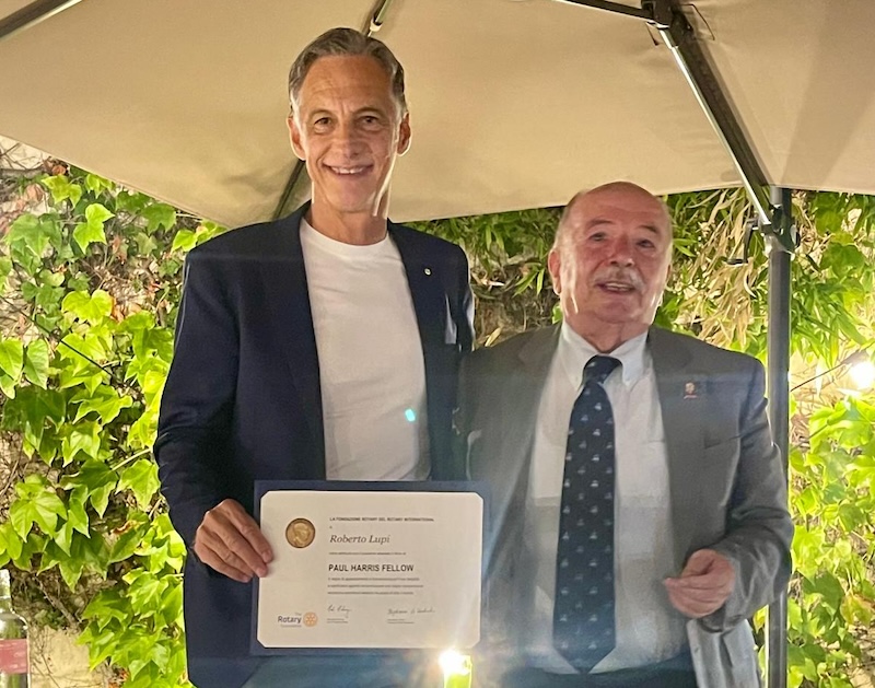 La serata è stata anche occasione per conferire un importante riconoscimento al socio Roberto Lupi: il P.D.G. Arrigo Rispoli ha consegnato infatti, per conto del Governatore 24/25 Pietro Belli, il Premio Paul Harris, massima onorificenza per il contributo di servizio e per aver promosso la comprensione e le relazioni amichevoli tra le persone. È Intervenuta poi Daniela Alfano Odello, moglie del Governatore del Distretto Rotary 2071 per l'annata 2025-2026 Dott. Giorgio Odello, per presentare il “Progetto d’Amore”, progetto distrettuale che prevede la fornitura di arredi per la Casa-famiglia Papa Francesco di Quercianella dedicata ai bambini da 0 a 16 anni sottoposti a tutela da parte dell’Autorità Giudiziaria toscana. La parola è passata poi all’Avv. Giampaolo Russo esponente del Rotary Club Pisa-Galilei che, con entusiasmo, ha invitato tutti i soci e loro ospiti a partecipare alla Convention Internazionale prevista a giugno 2026 a Taipei.