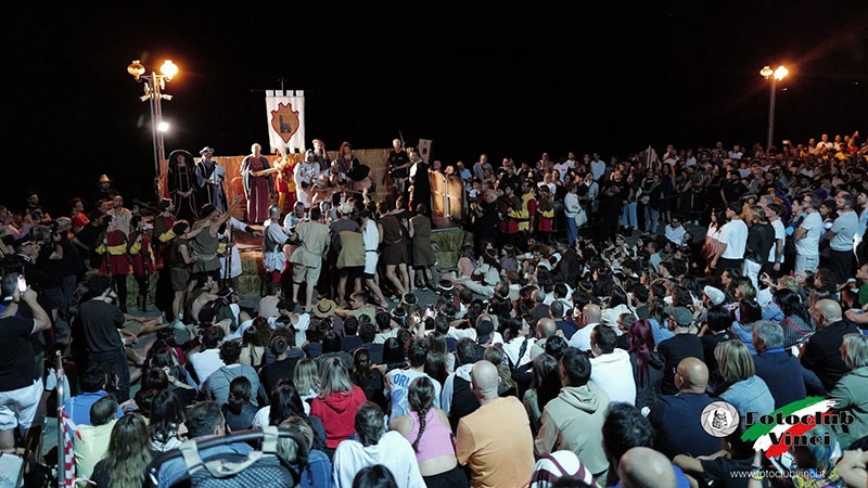 Proprio il Volo di Cecco Santi, “nato come rituale popolare e simbolico nel 1856, ha subito trasformazioni storiche, culturali e teatrali. Oggi è una ricostruzione leggendaria che mescola elementi religiosi, civili e politici, ma la cui origine storica è ben più radicata nella tradizione locale, nei simboli della lotta tra bene e male, e nella memoria collettiva del paese”.