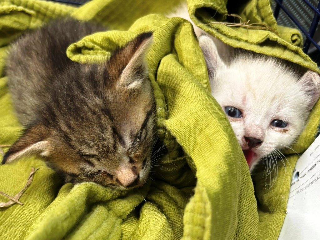 I gatti, di appena un mese, stavano per essere schiacciati da un trattore, ma il conducente li ha notati. Sono stati presi in carico dalle volontarie 'Amici di Barone'