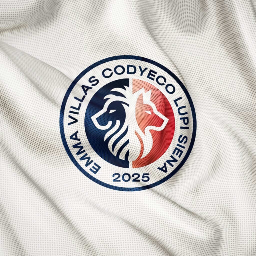 Il nuovo logo di Emma Villas Codyeco Lupi Siena racconta visivamente l’incontro tra due storie sportive, senza rinunciare all’identità di ciascuna. Il leone e il lupo, stilizzati in modo speculare e distintivo, diventano due metà che si completano in un unico cerchio: uno spazio condiviso che accoglie differenze e le trasforma in forza comune. Anche la scelta cromatica, blu e rosso su fondo bianco, rispecchia questa logica di continuità e rilancio, sintetizzando le rispettive tradizioni visive in un linguaggio moderno ed efficace.