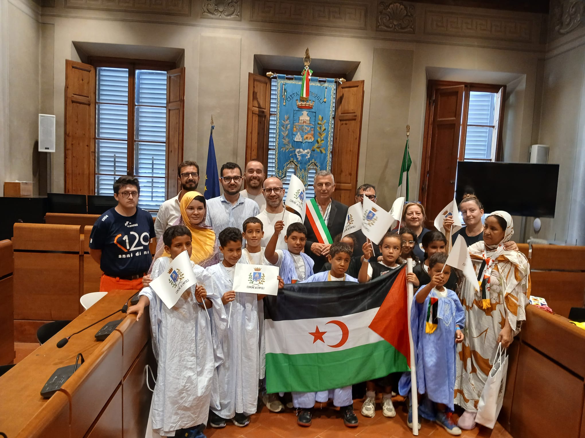 Sono tornati nella loro città amica, Empoli. La delegazione del Saharawi con i ‘Piccoli Ambasciatori di Pace’ hanno fatto tappa in città, domenica 10 agosto 2025. Accompagnati dalle loro educatrici, il gruppo di bambine e bambini è in Italia dal 6 luglio e ci resterà fino al 21 agosto prossimo. Un soggiorno che consente loro di conoscere nuove ‘terre’, di vivere quasi due mesi di vita migliore, di giocare, fare varie attività, effettuare controlli sanitari, ma soprattutto, diffondere il loro messaggio di pace, giustizia e solidarietà promuovendo l’incontro e il dialogo tra i popoli.