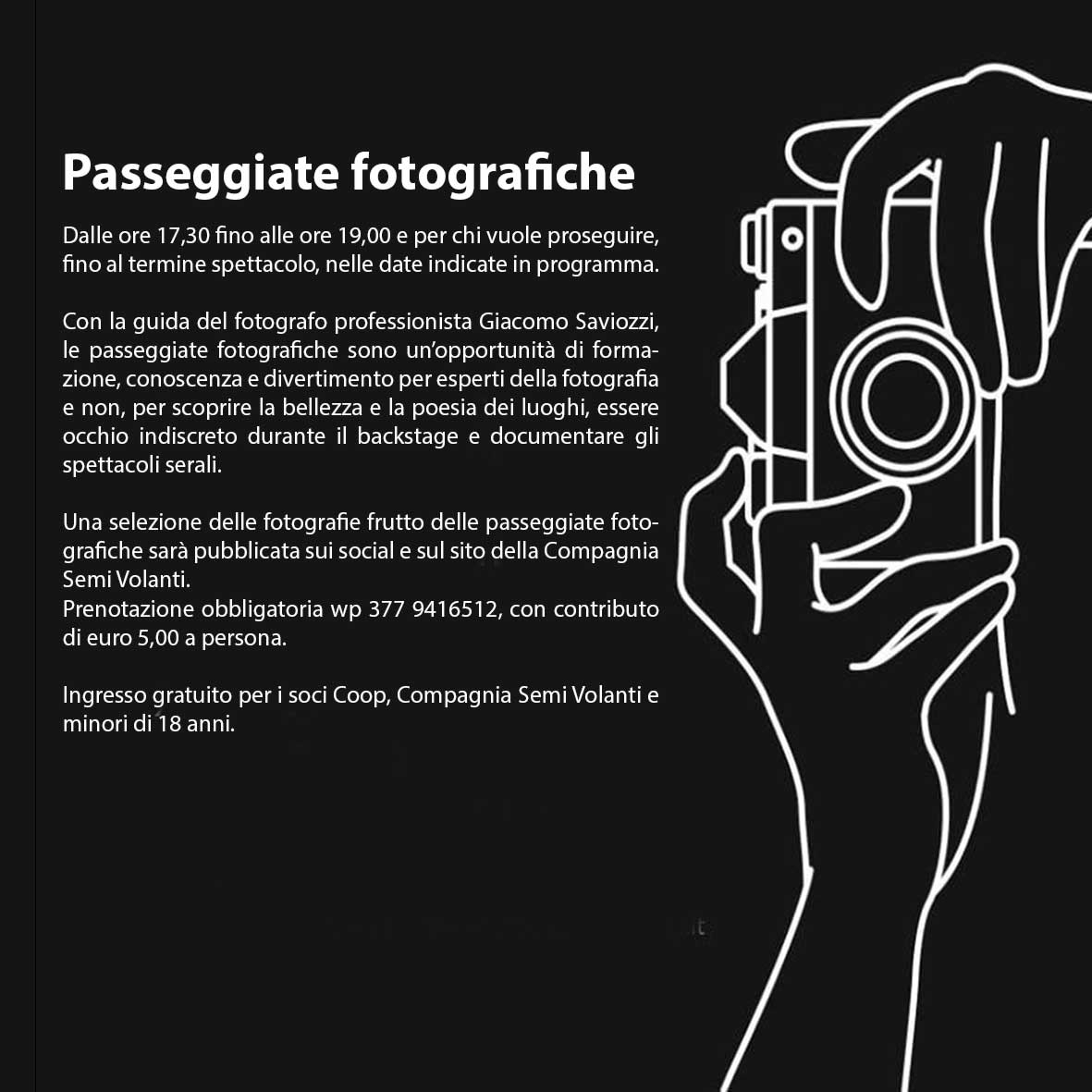 La Compagnia Semi Volanti ricorda che gli spettacoli sono a ingresso gratuito e le attività e apericena sono tutte su prenotazione: info www.compagniasemivolanti.it
