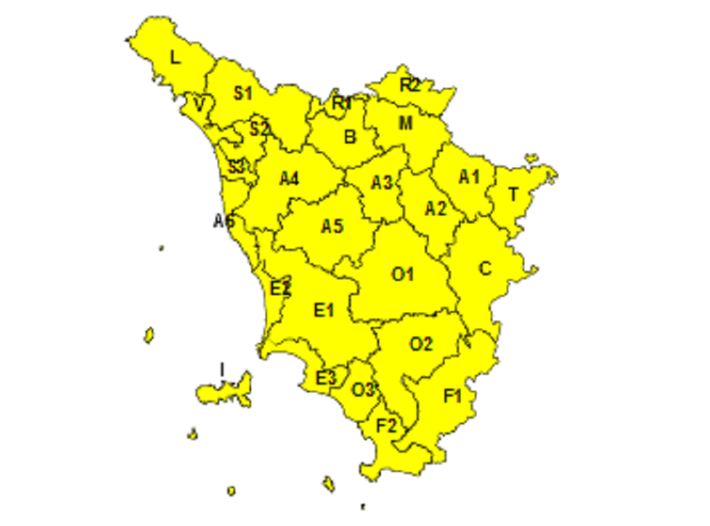 Ondata di maltempo in arrivo sulla Toscana nelle prossime ore. La Sala operativa regionale della protezione civile ha esteso il codice giallo per  rischio idrogeologico-idraulico del reticolo minore e temporali forti a tutta la regione per la serata di oggi e per tutta la giornata di domani, mercoledì 20 agosto.