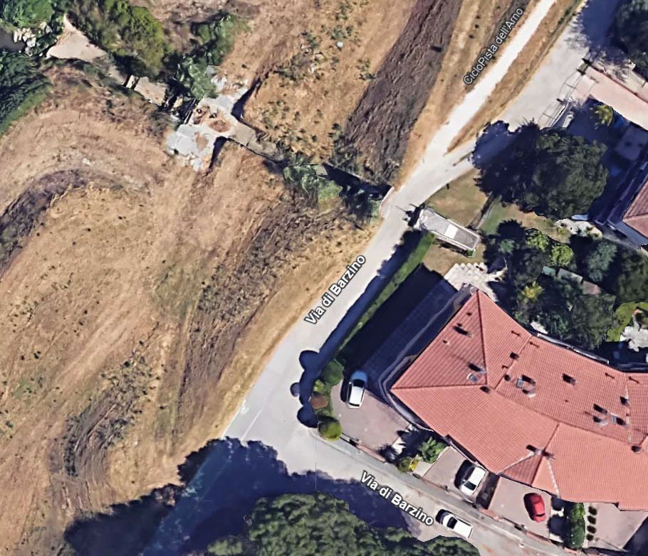 Nei mesi scorsi in via di Barzino in corrispondenza per un tratto alla ciclopista sull’Arno, il parapetto del ponticello è stato danneggiato per un urto accidentale.