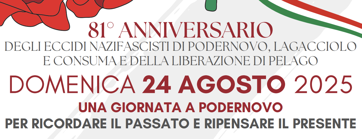 Domenica 24 agosto 2025 la comunità pelaghese tornerà a riunirsi per commemorare l’81° anniversario degli eccidi di Podernovo, Lagacciolo e Consuma e della Liberazione di Pelago, in una giornata interamente dedicata alla memoria, alla partecipazione e alla riflessione civile.