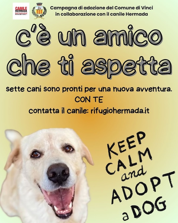 I residenti del Comune di Vinci che hanno intenzione di prendere un cane custodito all’Hermada, possono contattare direttamente il canile al 3346211610 (sette giorni su sette, dalle 10 alle 12 e dalle 18 alle 20) per avere tutte le informazioni necessarie sugli animali.