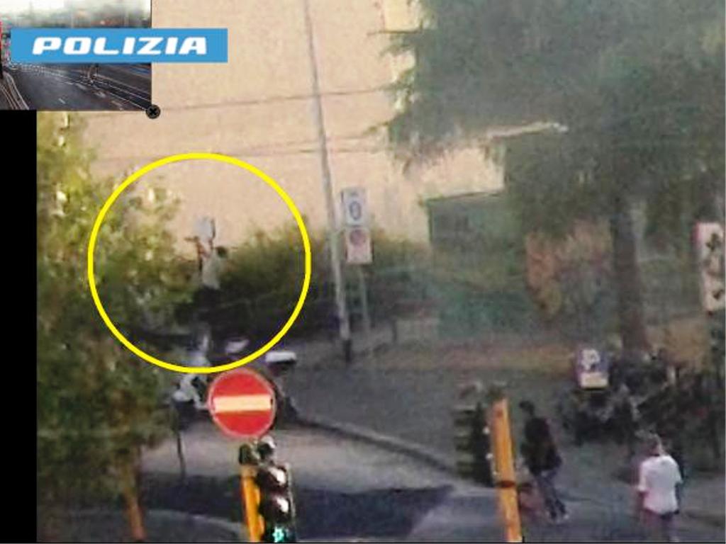 Le indagini, supportate dalla visione delle telecamere del circuito cittadino, hanno permesso di individuare un cittadino marocchino di 24 anni, con precedenti di polizia, che intorno alle 19:25 del 26 agosto si era appeso alla lapide, provocandone la caduta e la rottura. Dalle immagini emerge che l’uomo appariva in stato di alterazione psico-fisica.
