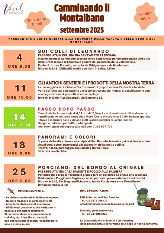 Ufficio turistico San Baronto: 0573 766472 / email: turismo@comune.lamporecchio.pt.it