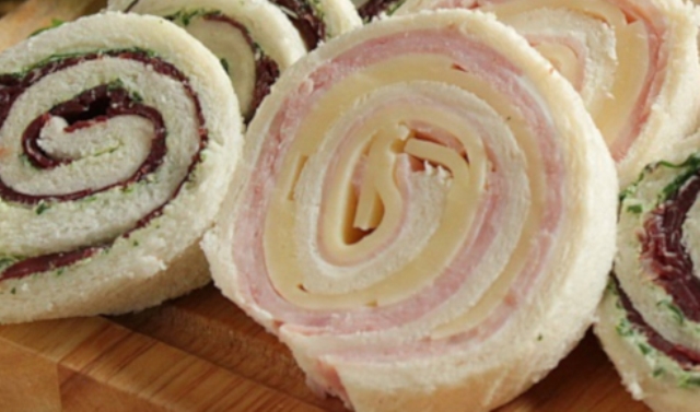 In un recipiente porre la robiola, il prosciutto cotto tagliato grossolanamente, sale, pepe, latte e frullate con il frullatore ad immersione fino a che diventerà una crema. Porre la crema sul pane, sopra mettete la rucola, arrotolate con delicatezza e poi avvolgete il rotolo nella pellicola trasparente. Ripetete l’operazione fino alla fine della crema (cinque rotoli). Fateli riposare in frigo per 30 minuti. Poco prima di servirli tagliateli a fette spesse di circa 1 cm.