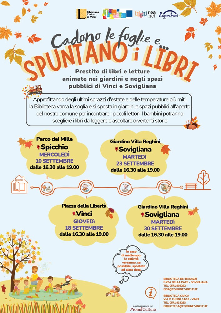 Riprende l’attività della biblioteca nelle letture animate e del prestito dei libri nei giardini e negli spazi pubblici di Vinci e Sovigliana.
