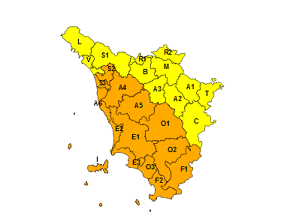 Il maltempo fa permanere il codice giallo nelle altre aree della Toscana fino alla mezzanotte di domani, mercoledì, con la possibilità di temporali localmente anche forti.