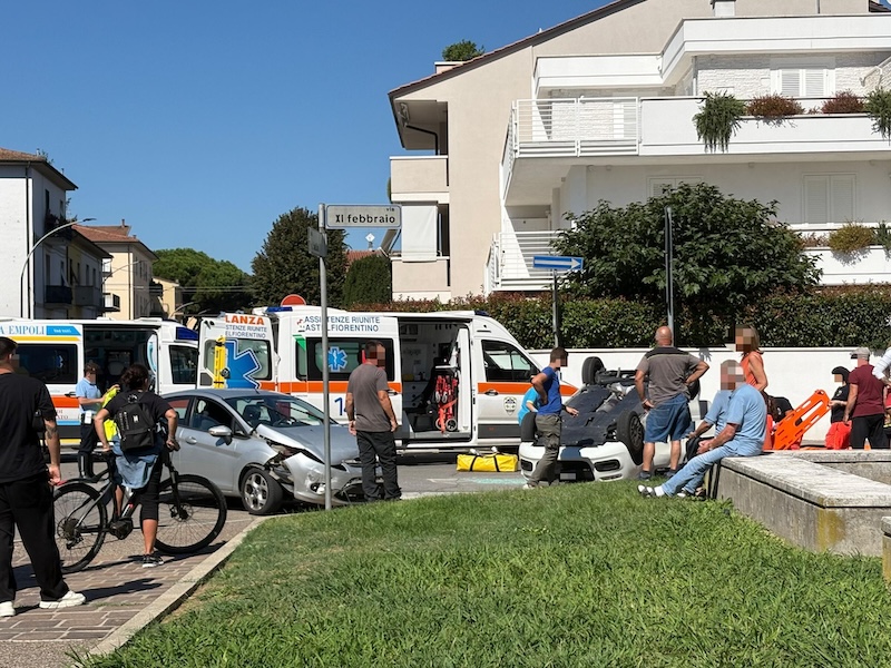 Grave incidente nel primo pomeriggio di oggi a Empoli, tra via XI Febbraio e via Vincenzo Bellini. Per cause in corso di accertamento due auto si sono scontrate all'altezza dell'incrocio e in seguito all'impatto uno dei due mezzi si è ribaltato. Sul posto, alle 13.40 circa, sono intervenuti i soccorsi inviati dal 118 con due ambulanze della Pubblica Assistenza e della Misericordia di Empoli, i vigili del fuoco e la polizia municipale dell'Unione dei Comuni per i rilievi.