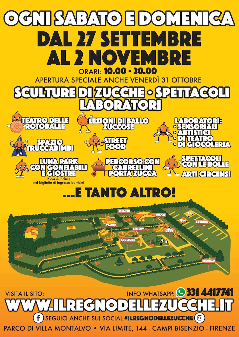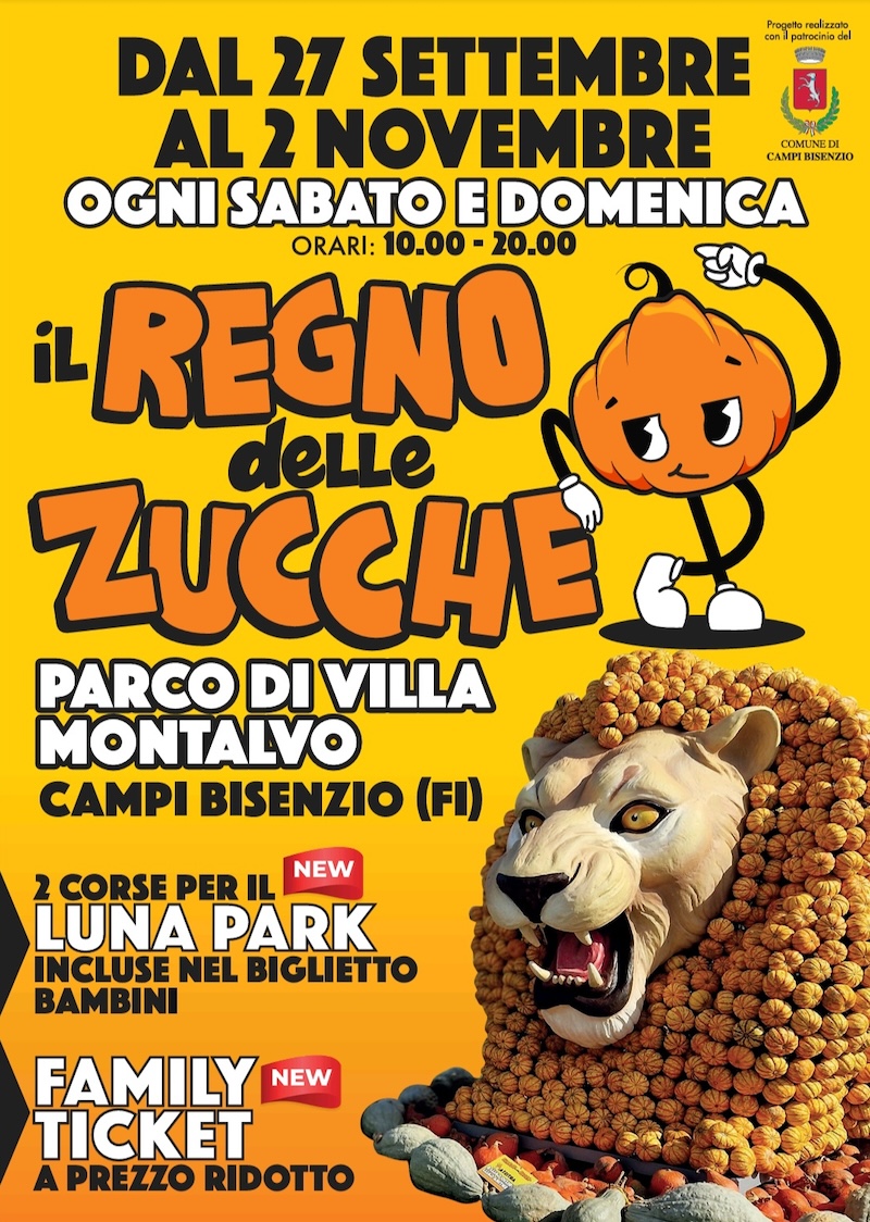 La capitale delle zucche è alle porte di Firenze, a Campi Bisenzio. Il Parco di Villa Montalvo si prepara a trasformarsi in uno speciale mondo incantato, per 6 weekend consecutivi dal 27 settembre al 2 novembre. Torna "Il Regno delle Zucche", evento per grandi e piccini giunto al suo secondo anno, con il patrocinio del Comune di Campi Bisenzio.