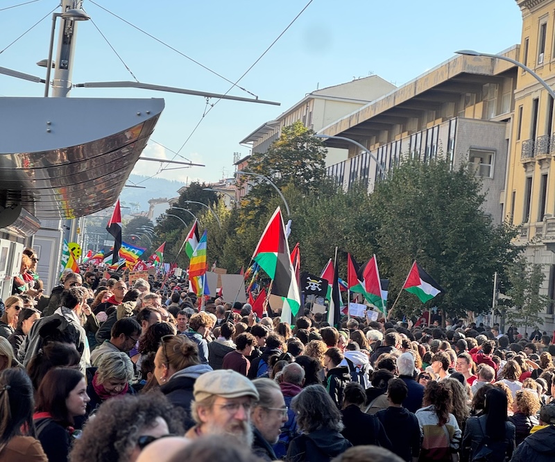 Ha detto dalla manifestazione di Firenze il segretario generale Cgil Toscana Rossano Rossi: “A Firenze abbiamo sfilato in 100mila, non si vedeva così tanta gente in piazza dai tempi del Social Forum, la Toscana tutta nelle diverse città ha dimostrato che si sono smosse le coscienze, e che le persone comuni ritengono inaccettabile il genocidio a Gaza, l’inazione del Governo, la corsa al riarmo, la deriva bellicista. Senza umanità non c’è giustizia, non c’è democrazia, non c’è futuro e oggi il mondo del lavoro, gli studenti, la società civile hanno manifestato insieme mandando un messaggio forte: vogliamo un futuro di pace e giustizia sociale”