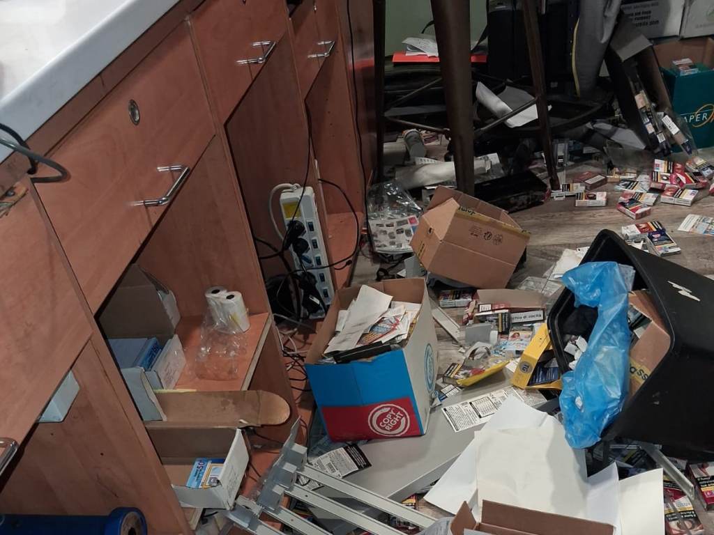 Secondo quanto raccontato dai gestori, i ladri sono entrati passando dai campi retrostanti, tagliando le reti degli orti confinanti. Una volta all’interno dell’ufficio, hanno distrutto due porte, compresa una porta blindata, il soffitto e la cassa forte, sradicata e gettata nel mezzo della stanza. I malviventi hanno portato via sigarette, gratta e vinci e alcuni liquori, mentre parte della merce rubata è stata ritrovata nei campi vicini.