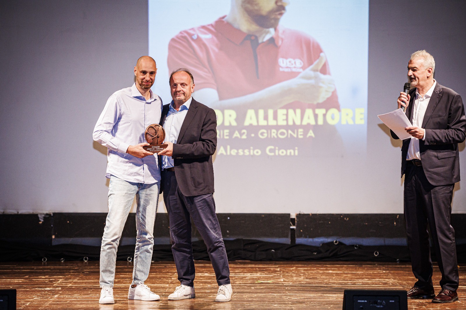 A consegnargli il premio è stato Andrea Capobianco, tecnico della Nazionale femminile che ha conquistato il bronzo ai recenti Europei. Una soddisfazione nella soddisfazione per coach Alessio Cioni che sabato sera a Brescia, in occasione della serata degli Oscar LBF 2025, ha ricevuto il premio come miglior allenatore del girone A di serie A2 della stagione 2024/2025.