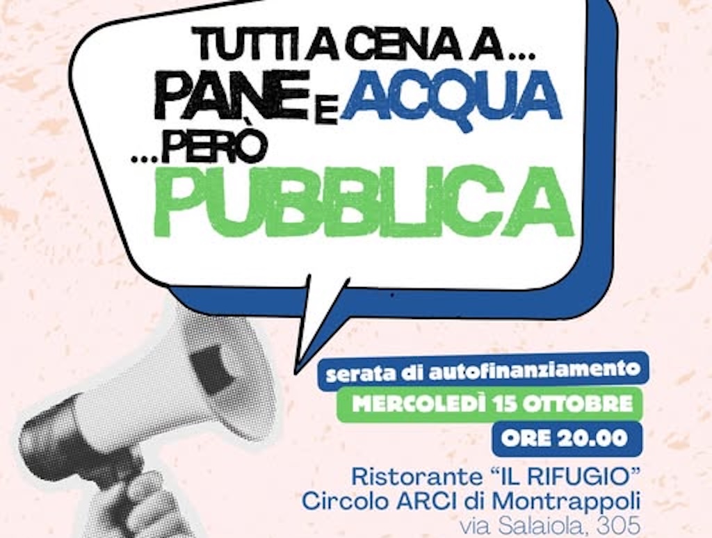 “A chi non piace il vino, Dio tolga l’acqua”, si dice in Toscana. A noi piacciono entrambi, eppure qualcuno l’acqua (così come i rifiuti e il gas) vorrebbe togliercela lo stesso. O per lo meno togliere il controllo a noi cittadini. Se anche voi non ci state e volete sostenere la nostra battaglia in vista del referendum comunale del 9 novembre sui servizi pubblici, venite a questa serata di autofinanziamento. Si mangia, si beve, si discute di futuro.