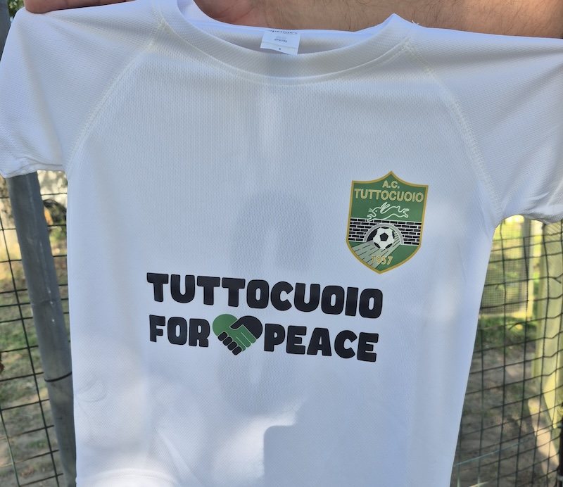 Un inizio con un "messaggio di pace", viene spiegato in una segnalazione che riporta il gesto della squadra dell'Ac Tuttocuoio in sfida oggi, domenica 12 ottobre, con Asd Città di Montopoli all'impianto sportivo Leporaia di Ponte a Egola, nel comune di San Miniato. "Questo gesto - viene aggiunto - identifica la volontà di ripudiare la guerra e ogni forma di violenza e promuovere l'amore e la fratellanza nello sport come nella vita". A corredo dell'iniziativa anche una maglia dedicata: "Tuttocuoio for Peace".