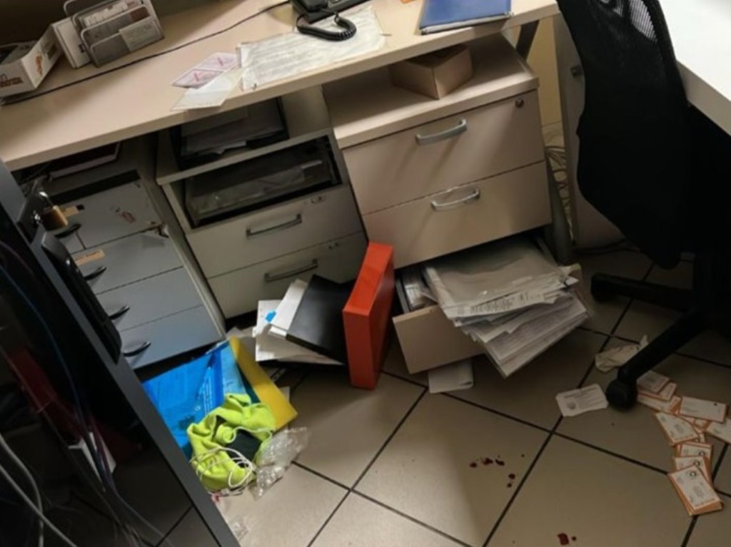 Dopo aver forzato l’area della reception, l’uomo ha rovistato tra gli armadietti, trovando al massimo una trentina di euro. Salito al piano superiore, ha tentato di aprire altri mobili, danneggiandoli, e ha rubato alcuni oggetti e materiali di lavoro, tra cui un computer portatile utilizzato per le attività di formazione e un tablet del 118.