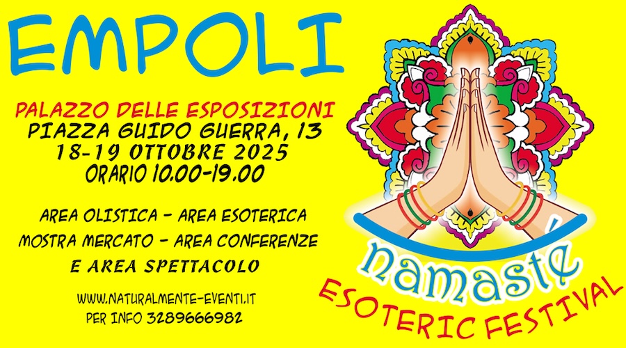 Empoli si prepara ad accogliere una nuova edizione di NAMASTÉ – Esoteric & Wellness Festival, in programma sabato 18 e domenica 19 ottobre 2025 presso il Palazzo delle Esposizioni di Piazza Guido Guerra.