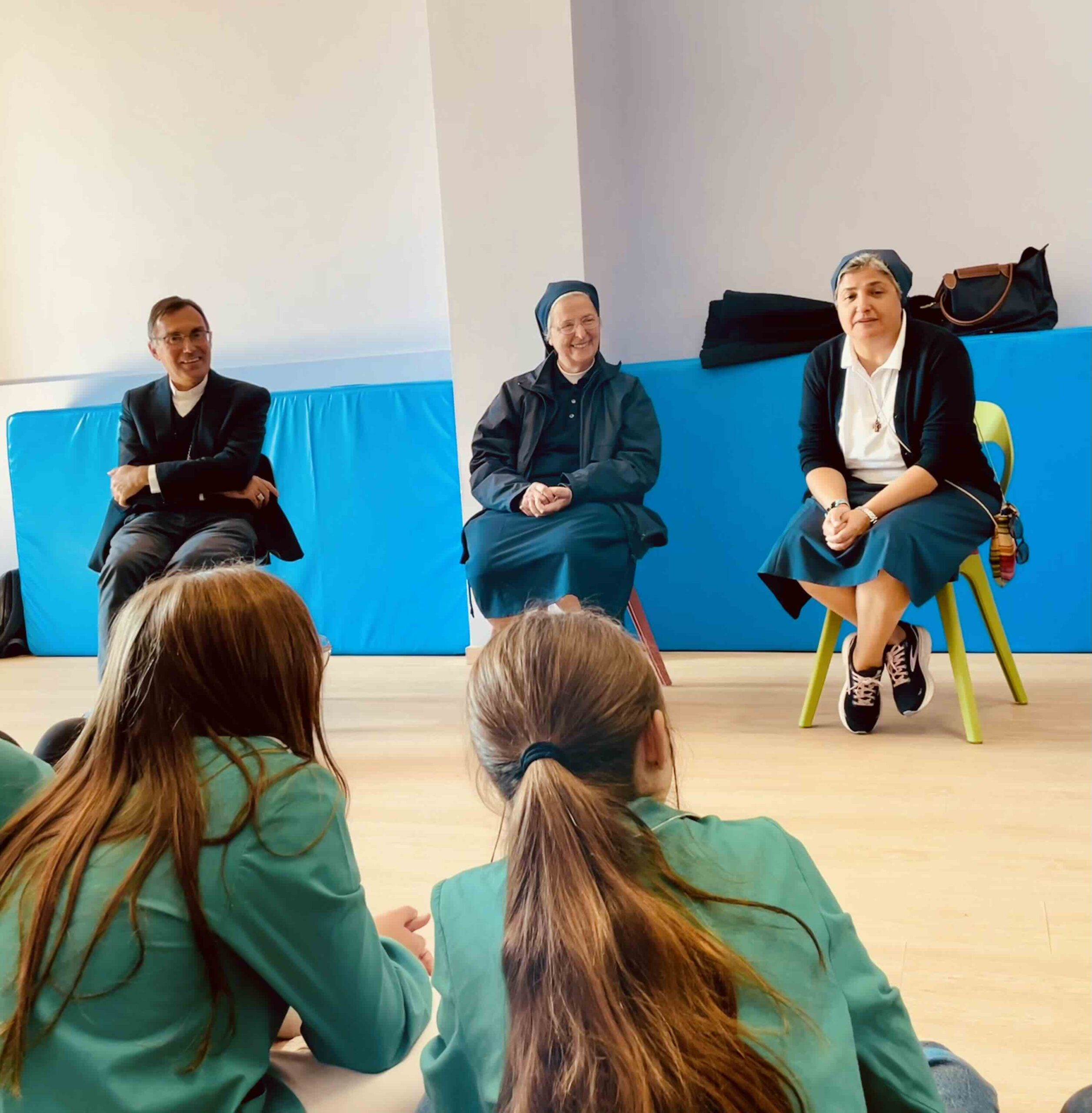 Nel dettaglio, la visita è stata l'occasione per evidenziare come il progetto educativo della Giuntini affondi le proprie radici nei principi vincenziani di accoglienza, servizio e attenzione alla persona. L'Arcivescovo e la Visitatrice hanno fatto tappa nelle sezioni dell’Infanzia e della Primaria. Di particolare rilievo, l'intervista dei bambini delle classi IV e V hanno fatto a Mons. Gambelli, a Suor Matragna e a Suor Spiezio, per un bel momento di dialogo, ed il Pranzo Condiviso con gli ospiti istituzionali e religiosi che, insieme ai genitori del Consiglio di Istituto e del Consiglio di Amministrazione agli insegnanti e ai bambini, hanno partecipato al Progetto del Pranzo Educativo, che mira a sviluppare autonomia, consapevolezza alimentare e socialità a tavola.