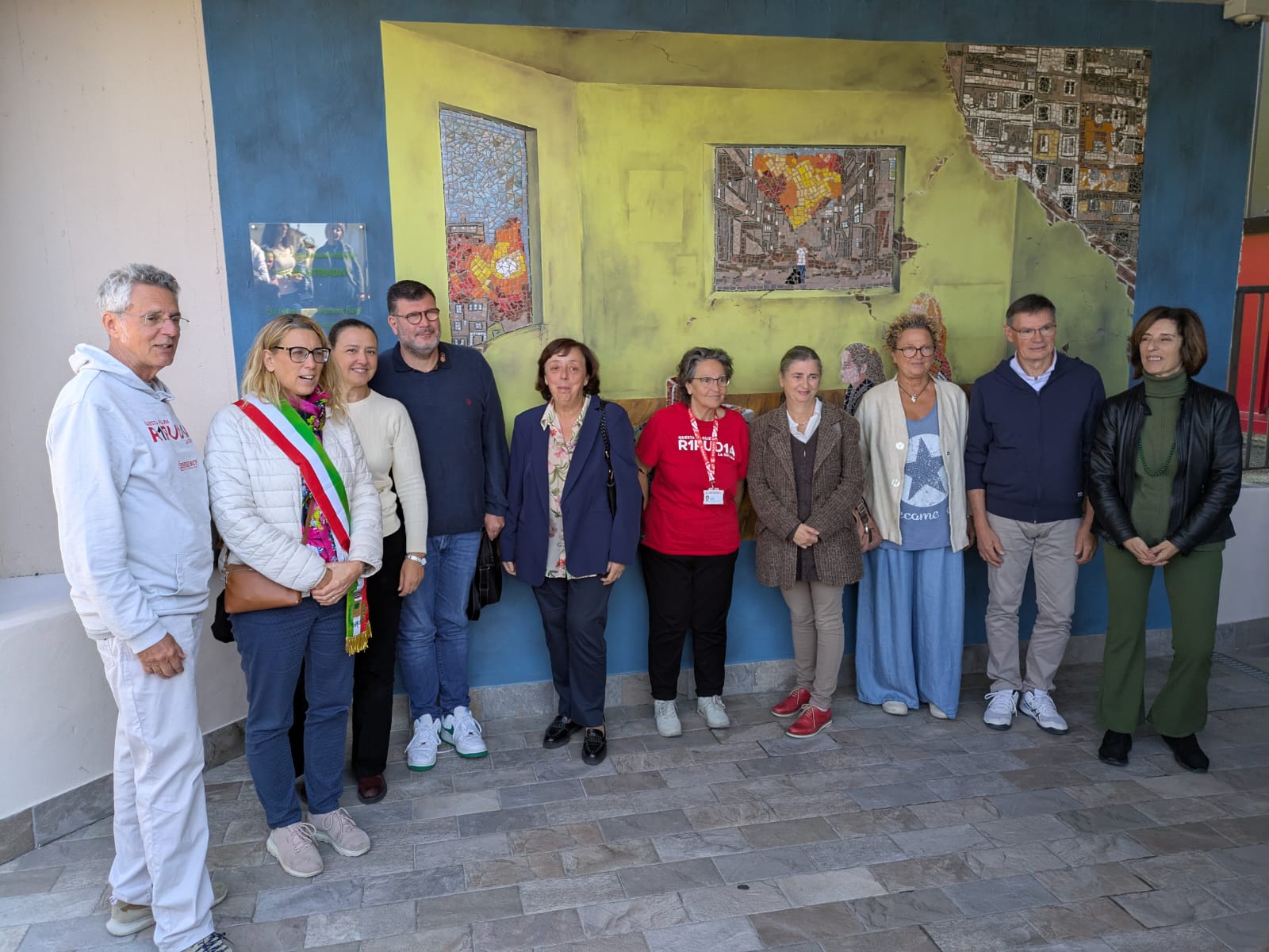 Il mosaico è stato posizionato sulla parete esterna e completato con una parte pittorica realizzata da Monica Ricci, una delle collaboratrici scolastiche di Cerreto che ha competenze artistiche davvero notevoli.