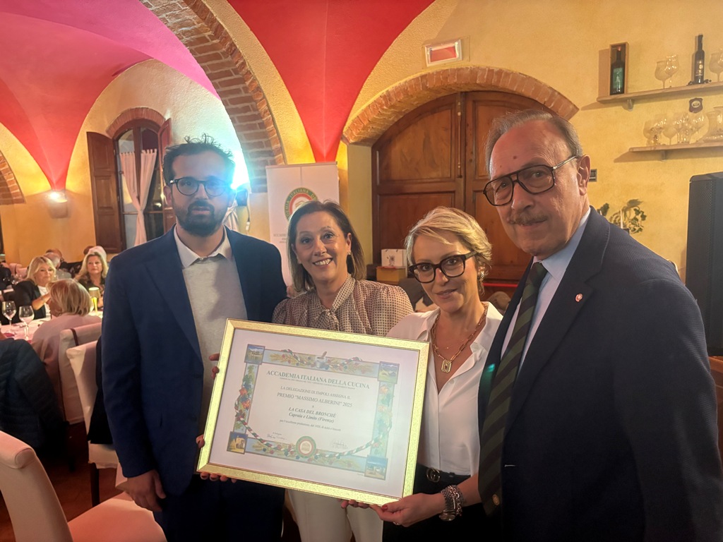 L’Accademia Italiana della cucina Delegazione di Empoli ha assegnato alla Casa del Bronchè di Limite il "Premio Massimo Alberini" per il 2025. Si tratta di un riconoscimento istituito nel 2014, assegnato agli esercizi commerciali estranei all’Accademia, che da lungo tempo, con qualità costante, offrono alimenti di produzione propria, lavorati artigianalmente con ingredienti di qualità eccellente e tecniche rispettose delle tradizioni del territorio.