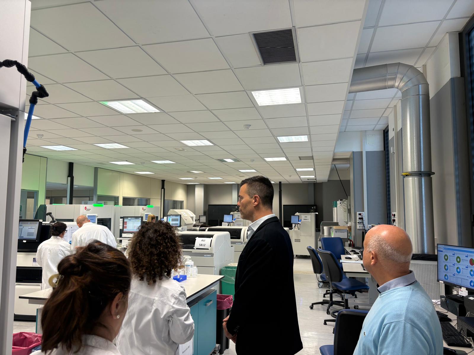 Durante la visita, sono state illustrate le attività della SOS di Patologia Molecolare Oncologica, realtà d’avanguardia che utilizza tecnologie di sequenziamento genico di ultima generazione (NGS) per migliorare diagnosi e personalizzazione dei trattamenti. La struttura è inoltre centro di riferimento aziendale per le indagini di profilazione genica.