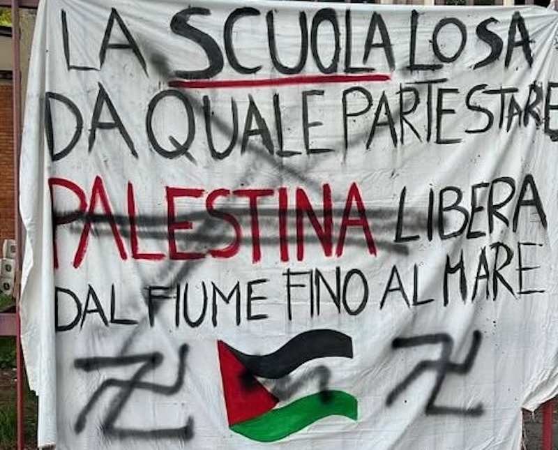 Questa notte sono comparse due svastiche su uno striscione per la Palestina, affisso all'esterno del Liceo artistico di Sesto Fiorentino. Nello striscione realizzato da studentesse e studenti è riportata la scritta "La scuola lo sa da che parte stare Palestina libera dal fiume fino al mare". Con lo spray nero è stata inoltre imbrattata la parola Palestina.
