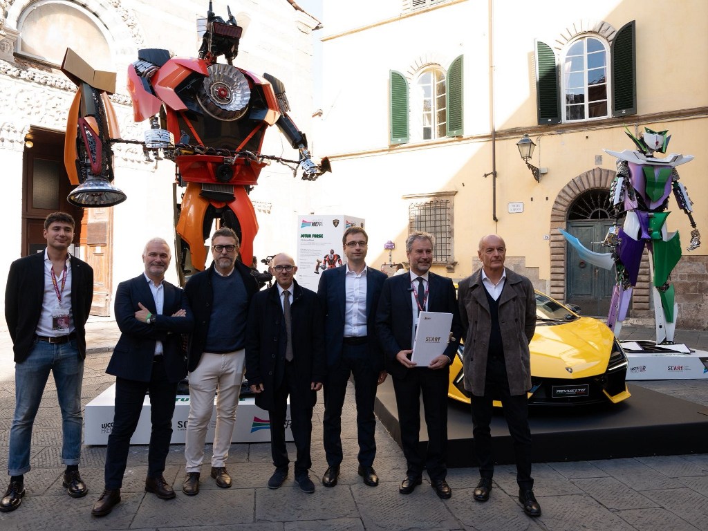 I difensori di aria, terra e acqua nelle piazze San Giusto, San Michele e a palazzo Guinigi In diversi punti della città sono state così presentate in anteprima mondiale 3 coppie di robot umanoidi alti 4 metri, capaci di trasformarsi in un attimo da supersportive a guerrieri difensori del Pianeta, sulla scorta dei celebri cartoni animati giapponesi degli anni Ottanta. Ogni coppia, formata da un personaggio femminile e uno maschile, incarna una missione su un preciso elemento della natura: aria, terra e acqua. Così in piazza San Giusto, accanto alla Lamborghini Revuelto, iconica V12 HPEV (High Performance Electrified Vehicle) della Casa di Sant’Agata Bolognese, sono arrivati Gea Stone (la voce della terra) e Jotun Forge (il colosso rosso), paladini della terra; in piazza San Michele Skyrenn (la madre dei venti) e Jetron (il navigatore dei venti), protettori dell’aria; mentre nel cortile di palazzo Guinigi Marixx (la sirena del cambiamento) e Mega Tide (il guardiano del blu), alfieri delle acque.