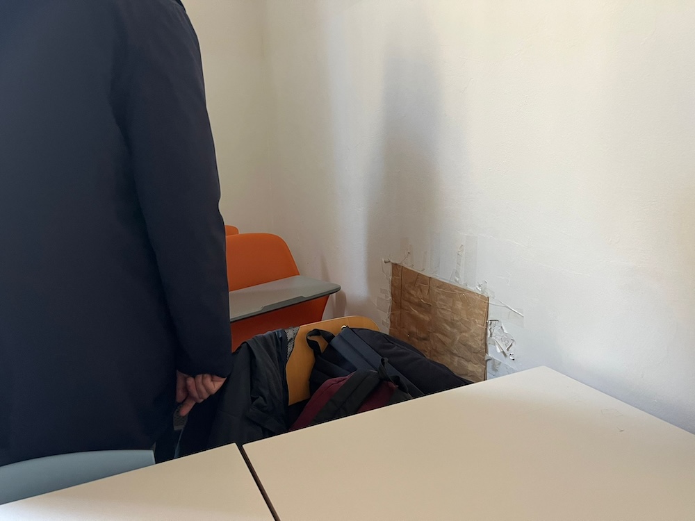 Tra le criticità segnalate anche al sindaco in presenza, si trovano "sicurezza e vie di fuga", come spiegato "c’è solo una scala, un’unica entrata e uscita per tutte le classi. Ci hanno detto che non si può fare una scala di emergenza esterna per averne almeno due, perché si andrebbe a invadere il suolo pubblico". E ancora "chiediamo un nuovo punto di raccolta", aggiungono gli studenti, "capiamo che è complicato ma quando devono uscire 195 persone da qui c’è un marciapiede stretto che dà sulla strada, e se non c’è chi dirige il traffico potrebbe essere rischioso". Tra i punti "mancanza di allarmi di emergenza al piano terra" come raccontato "quello antincendio ci sarebbe, ma non è stata fatta manutenzione e non funziona". I ragazzi raccontano che durante le esercitazioni sarebbero utilizzati dei megafoni, "passano le collaboratrici scolastiche per le varie classi, ma in alcune non si sente o si sente dopo". Seguono "strumenti didattici inadeguati e condizioni strutturali" tra cui "buchi sul muro tappati con cartoni e scotch" e "fili scoperti sotto il battiscopa" in particolare in un’aula a piano terra, "servizi igienici insufficienti, ci sono quattro bagni ma spesso due di questi si guastano" e "odore di fogne in alcune aule".