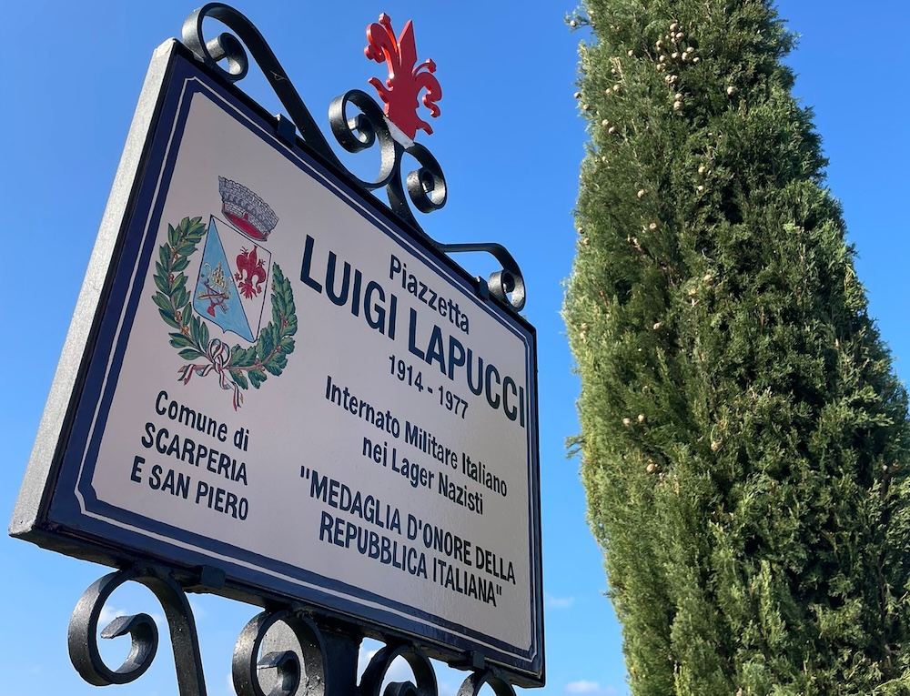 La piazzetta davanti al cimitero di San Gavino, nel Comune di Scarperia e San Piero, è stata intitolata a Luigi Lapucci, militare italiano internato nei campi di prigionia nazisti dopo l’8 settembre 1943 e insignito lo scorso gennaio della Medaglia d’Onore del Presidente della Repubblica. Ieri sabato 8 novembre la cerimonia, alla presenza del Cardinale Ernest Simoni, delle massime autorità civili e militari, del sindaco Federico Ignesti con l’amministrazione comunale e rappresentanti dei comuni di Barberino di Mugello e Montespertoli. Presente anche il Cav. Vieri Lascialfari, cerimoniere della Polizia Locale e nipote del decorato, e la storica e giornalista Giovanna Maria Carli, che ha letto la biografia di Lapucci tra la commozione dei figli Maria, Paola, Francesca e Francesco, e dei numerosi cittadini accorsi.