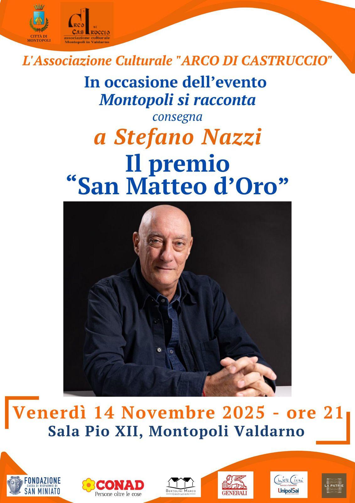 Quest’anno l’Associazione Culturale Arco di Castruccio ha deciso di conferire il prestigioso riconoscimento montopolese a Stefano Nazzi. Nelle precedenti edizioni è stato assegnato a Pippo Baudo, al giornalista Roberto Giacobbo, al cantante Simone Cristicchi, alla scrittrice Dacia Maraini, allo storico dell’arte Antonio Natali e ad altri importanti personalità che si sono distinte negli anni nel panorama culturale italiano.
