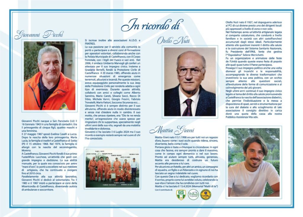 Sabato 15 novembre 2025 verrà inaugurata la Saletta 'Giovanni Picchi' della Pubblica Assistenza di Castelfranco di Sotto e la postazione pubblica di defibrillazione (DAE) intitolata a Mattia Giani e Otello Nuti.
