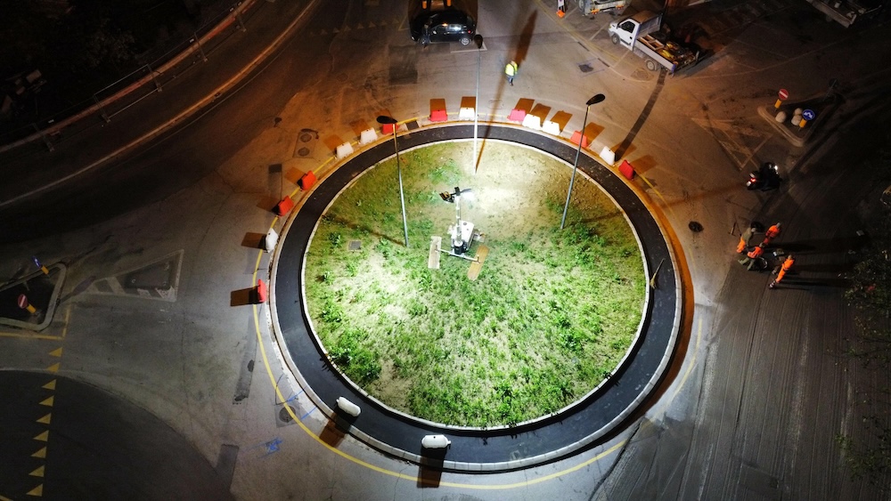 Sono in corso i lavori di riasfaltatura della rotatoria del CNR e delle strade che vi confluiscono, al confine tra il Comune di Pisa e quello di San Giuliano Terme, all’incrocio tra via di Pratale, strada provinciale Vicarese, via Moruzzi, via Volpi e via Alfieri. I lavori sono eseguiti in orario notturno per ridurre al minimo i disagi al traffico. Precedentemente era stato realizzato l’allargamento della rotatoria, sostituendo quella provvisoria, ormai insufficiente a gestire i flussi di traffico attuali.