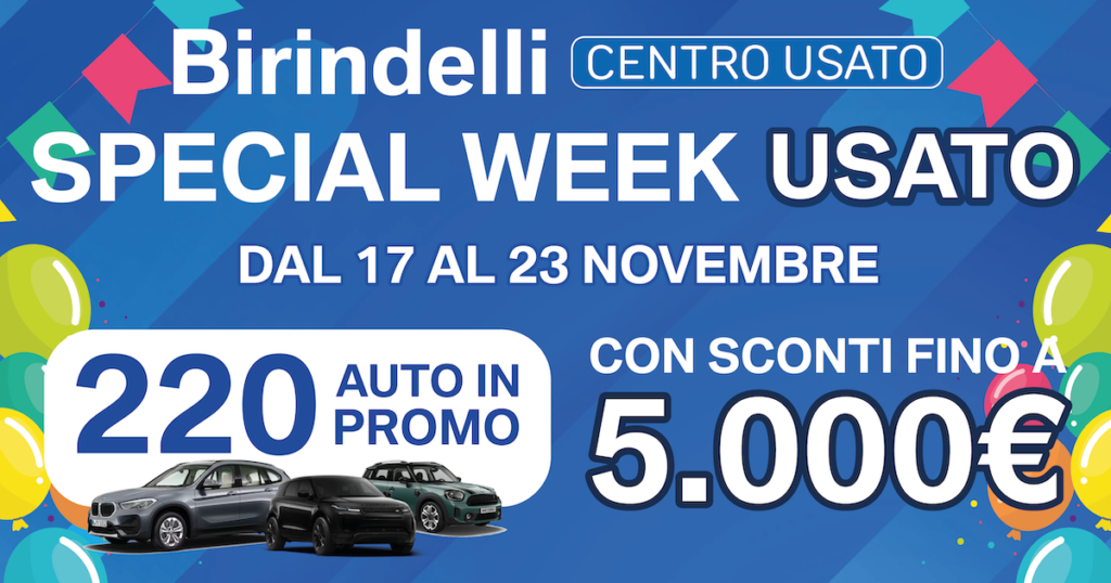 Dal 17 al 23 novembre, le concessionarie Birindelli Auto aprono le porte alla Special Week, un evento straordinario dedicato al mondo dell’usato garantito. Un’intera settimana in cui sarà possibile scegliere tra oltre 220 vetture selezionate, tutte certificate e garantite, con sconti fino a 5.000 euro.