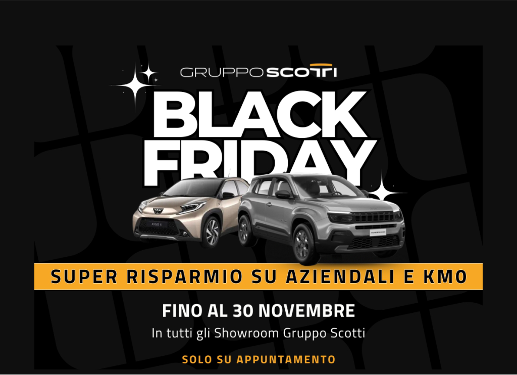 Novembre è il mese delle offerte più attese dell’anno e Gruppo Scotti celebra il Black Friday con una proposta davvero imperdibile: fino al 30 novembre sarà possibile approfittare di super risparmi su una selezione esclusiva di vetture KM0 e aziendali multimarca