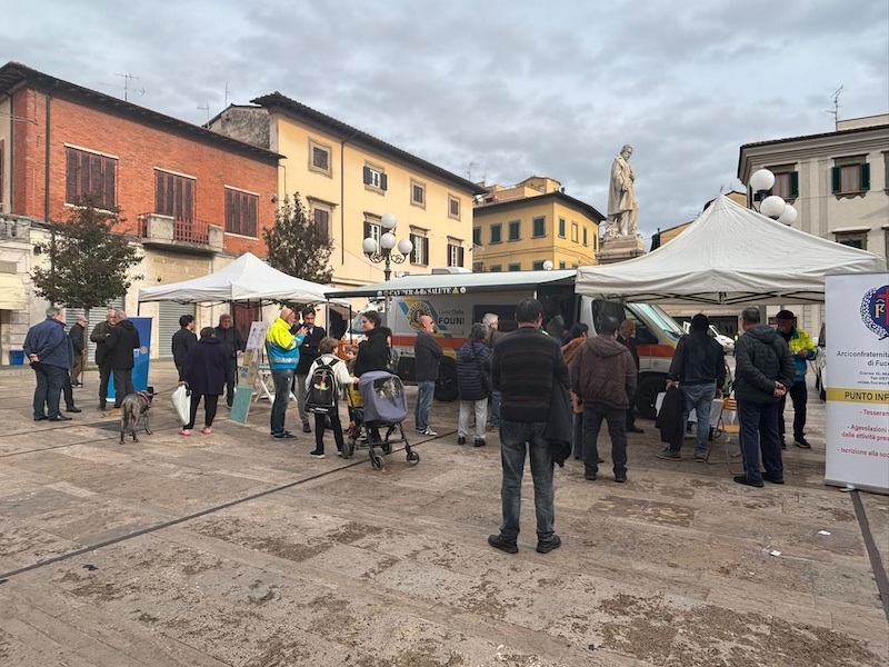 Ottima risposta dei cittadini per la giornata dedicata alla prevenzione delle malattie cardiovascolari che si è svolta domenica 16 novembre a Fucecchio promossa dalla Misericordia in collaborazione con il Rotary Club Fucecchio Santa Croce. Tanti cittadini hanno mostrato interesse e partecipazione, confermando quanto la prevenzione sia un pilastro fondamentale per la salute e la qualità della vita. L’open day, patrocinato dalla Regione Toscana e dal Comune di Fucecchio, ha avuto luogo nella centralissima piazza Montanelli trasformata nell'occasione in un ambulatorio medico con l'obiettivo di sensibilizzare la popolazione sull’importanza della cultura della prevenzione attraverso controlli periodici e stili di vita sani che contribuiscono alla buona salute dell’intera cittadinanza.