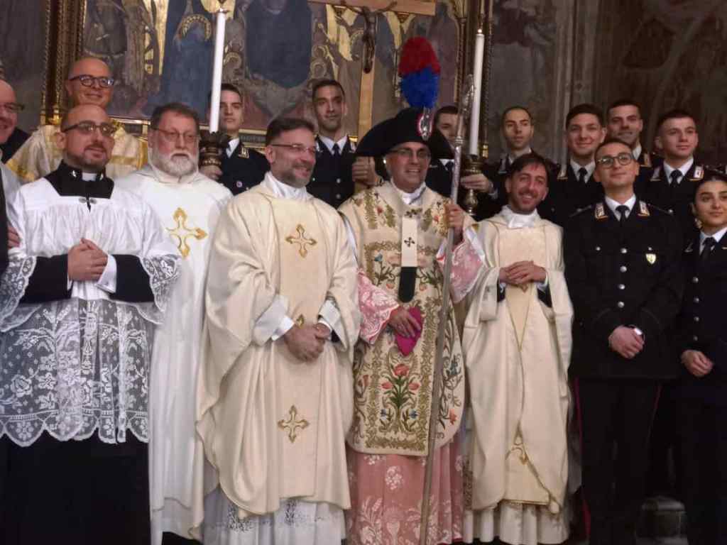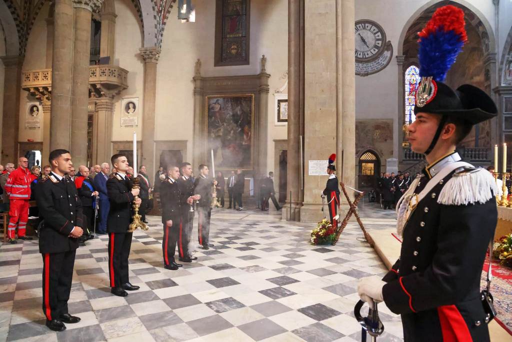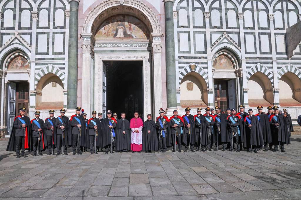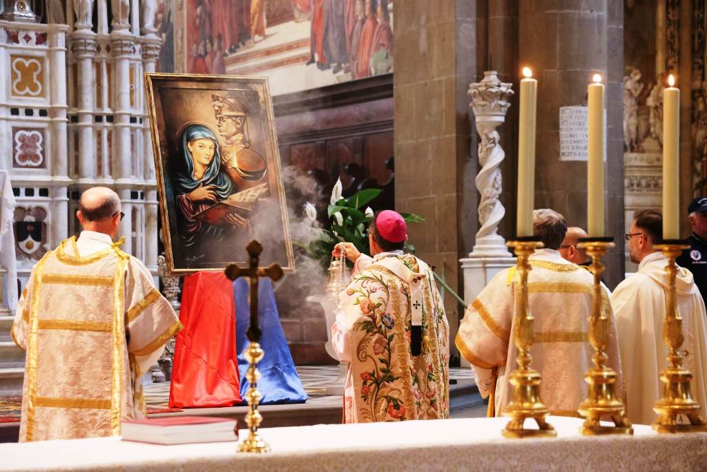 Nella mattinata odierna, nella suggestiva cornice della Basilica di Santa Maria Novella, alla presenza del Comandante della Legione Carabinieri Toscana, Generale di Brigata Pierluigi SOLAZZO e delle massime autorità cittadine, è stata celebrata la Santa Messa in onore della “Virgo Fidelis”, celeste Patrona dell'Arma dei Carabinieri, officiata da Sua Eminenza Mons. Gherardo GAMBELLI, Arcivescovo Metropolita di Firenze. Nella solennità della basilica, con le esecuzioni musicali della fanfara e del coro della Scuola Marescialli e Brigadieri dell’Arma, si sono riuniti i militari in servizio ed in congedo, gli allievi della Scuola stessa, le rappresentanze dell'Associazione Nazionale Carabinieri, i rappresentanti APCSM le vedove e gli orfani dei militari caduti nell'adempimento del dovere.