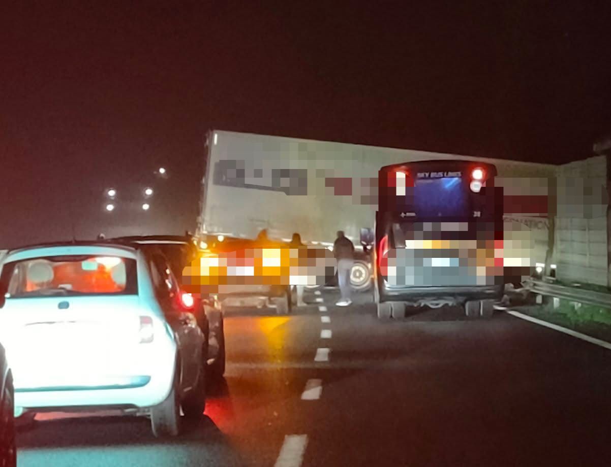 Alle ore 00.30 la strada era ancora chiusa con uscita obbligatoria prima del tratto interessato