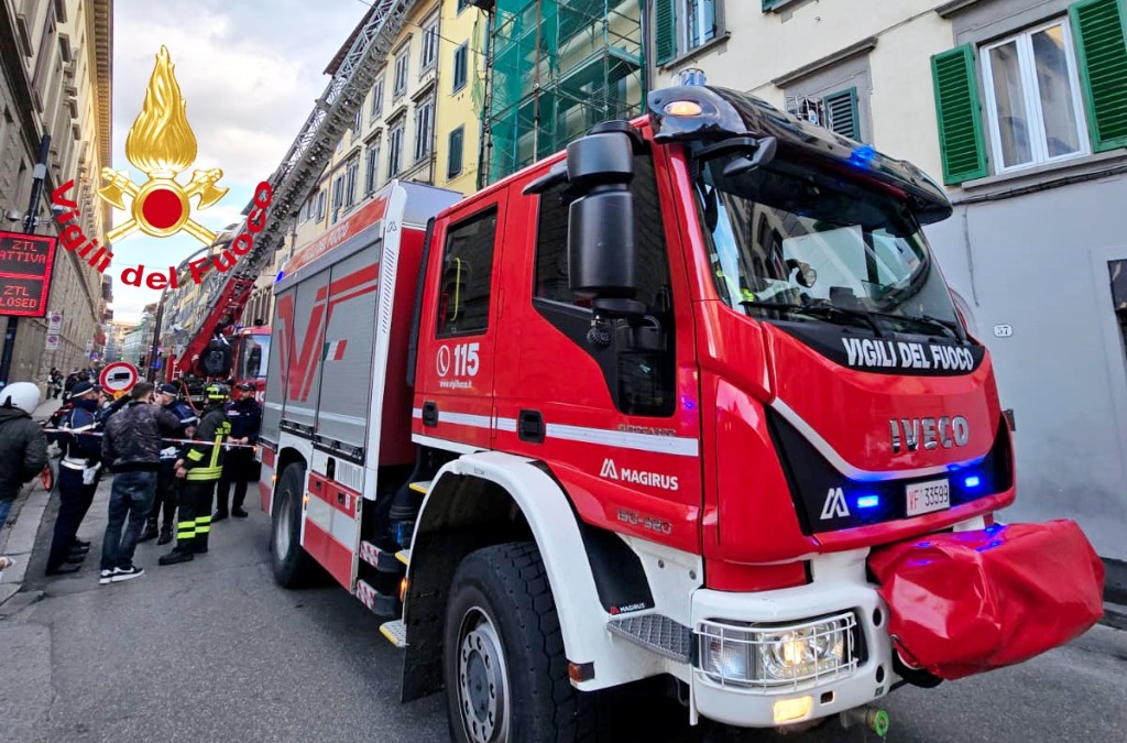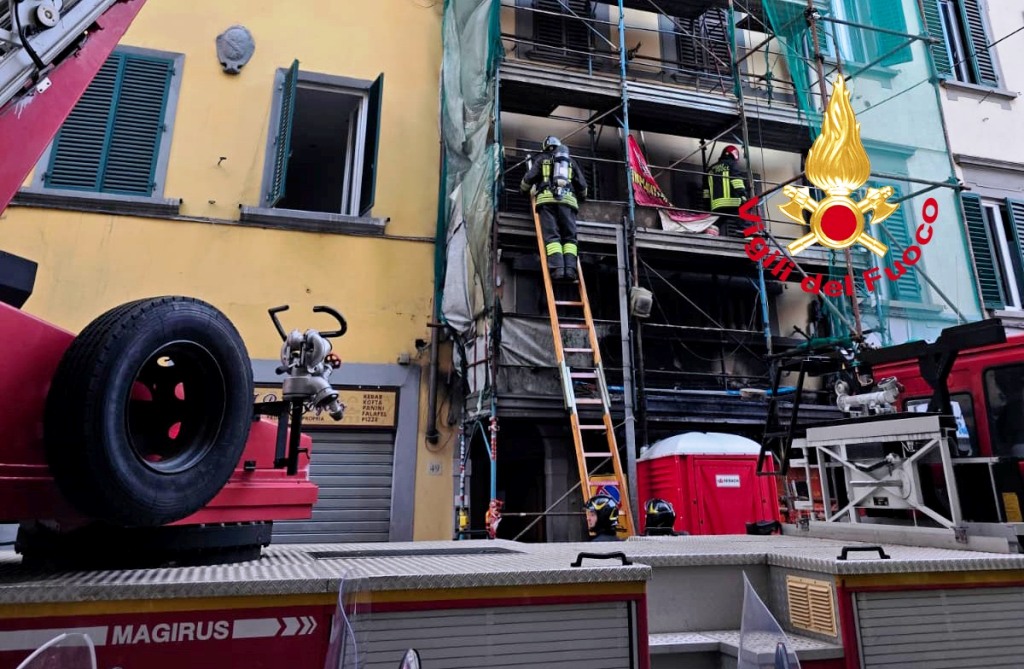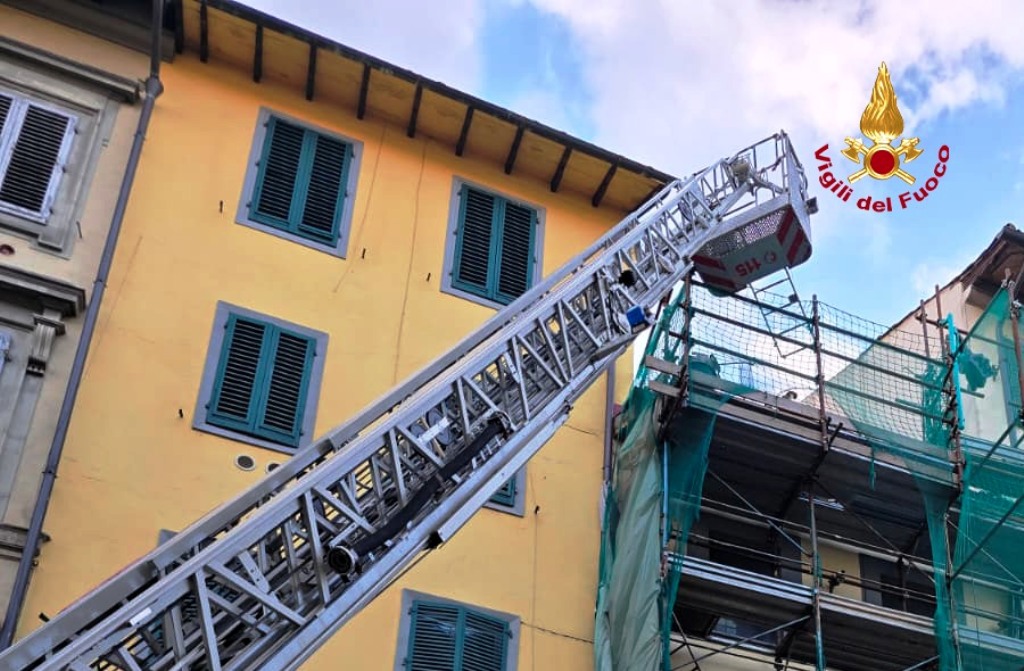 L'edificio interessato è composto da cinque piani fuori terra, sul quale sono installati i ponteggi per lavori di ristrutturazione. I Vigili del Fuoco intervenuti con due squadre , un’autoscala e un’autobotte, sono impegnati per le operazioni di bonifica e di messa in sicurezza dei locali dell’attività commerciale. Sul posto il funzionario per le verifiche del caso.