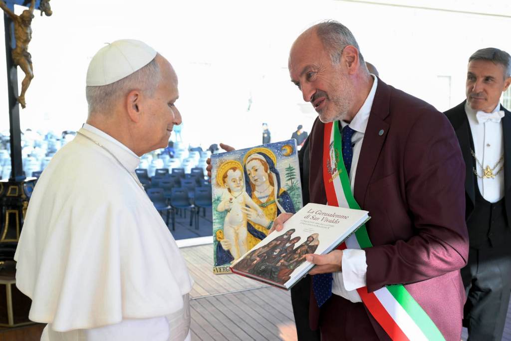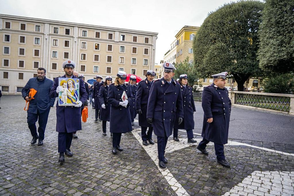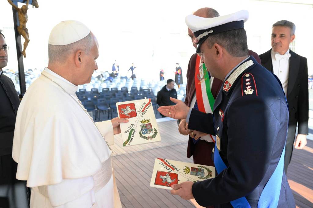 La Polizia Locale dopo uno speciale momento di preghiera nella Basilica di San Pietro, incontrando il Santo Padre sul sagrato, gli ha fatto, di alcuni doni, tra questi una grande ceramica in terracotta ingeliva invetriata, tipica della Valdelsa raffigurante la riproduzione di Madonna con Bambinello in piedi, con in mano una melagrana segno della passione che Gesù avrebbe dovuto subire per la Redenzione con il suo sangue per la salvezza dell'umanità. Ai piedi della riproduzione presente nei tipici tabernacoli delle campagne toscane, è riportata la frase del Sommo Poeta Dante Alighieri nel Canto XXXIII del Paradiso: "Vergine Madre Figlia del tuo figlio". Donato anche al Pontefice di una mattonella sempre in ceramica con decorato lo stemma della Polizia Locale autografato sul retro da tutti i partecipanti al giubileo.