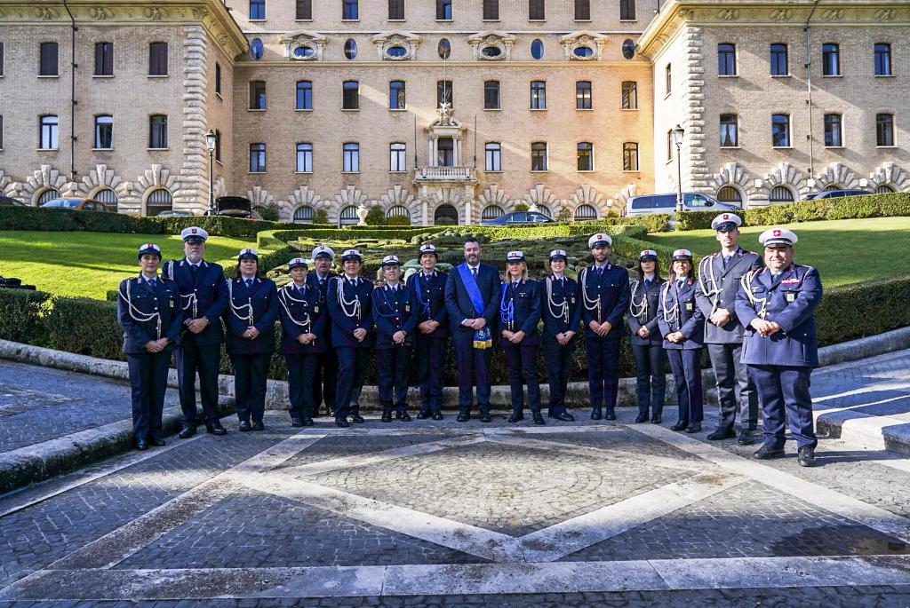 Papa Leone XIV facendo uno strappo al protocollo ha apposto la sua firma sul crest della Polizia Locale.