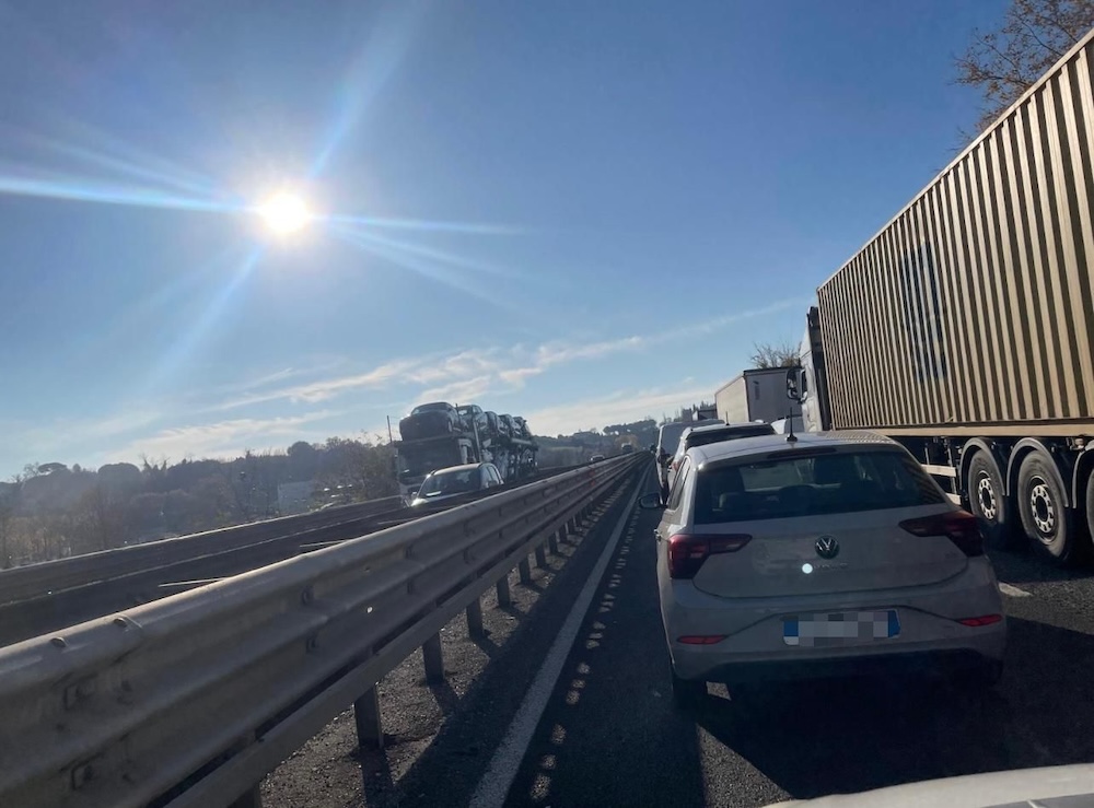 Registrati forti rallentamenti, con il traffico attualmente bloccato nel tratto interessato. Nell'ultimo aggiornamento delle 14.33 la coda risulta in aumento a 7 km.