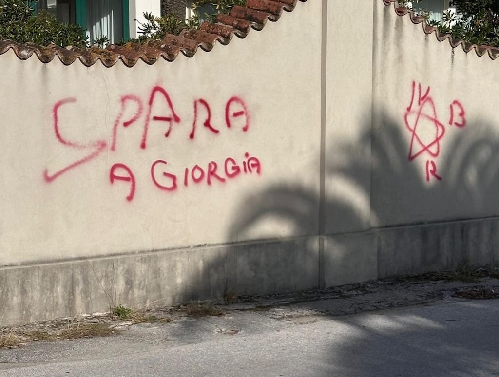 "Spara a Giorgia" e accanto qualcosa che ricorda una stella a cinque punte, con tanto di sigla BR. La scritta è comparsa a Tonfano, nel comune di Pietrasanta, ed è stata vergata con spray rosso sul muro di un hotel. Il riferimento, secondo Fratelli d'Italia, è a Giorgia Meloni, presidente del Consiglio.