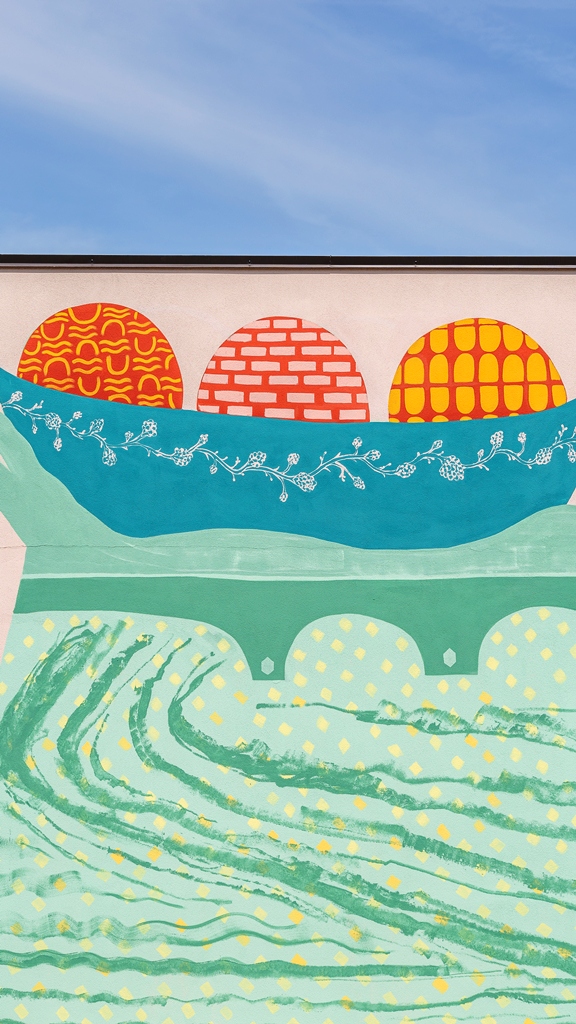 Il murale “Le curandere” realizzato dall’artista Lisa Gelli e curato da Street Levels Gallery di Firenze dona un’identità contemporanea al nuovo EcoPark di Ponte a Elsa, nel Comune di Empoli (FI), e parla di cura e supporto alla comunità.
